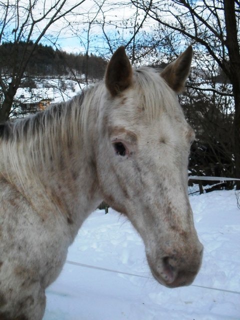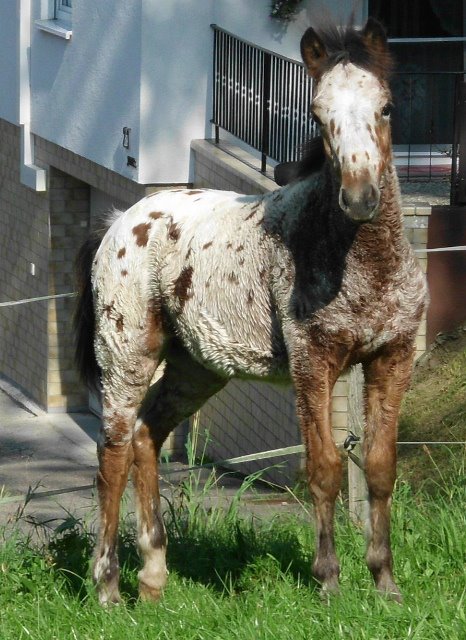 geb. 30. Juni 2001; Appaloosa-Mix, Sute, 153 cm groß, Tigerschecke. Flocke ist meine älteste und erfahrenste Mitarbeiterin - sie ist eine Seele von Pferd. Als Herdenchefin passt sie auf, dass sich alle benehmen. Sie hat zwei Fohlen das Leben geschenkt. Ihr Sohn Socke lebt bei uns. Den Kindern gegenüber verhält sie sich sehr mütterlich. Sie strahlt eine unglaubliche Weisheit und Beständigkeit aus. Flocke ist eine wunderbare Begleiterin und genießt seit 2021 ihre Teilzeitrente. Sie darf noch Kinder tragen und Erwachsenen bei ihren NIG® Einheiten die Lösung nahe bringen.