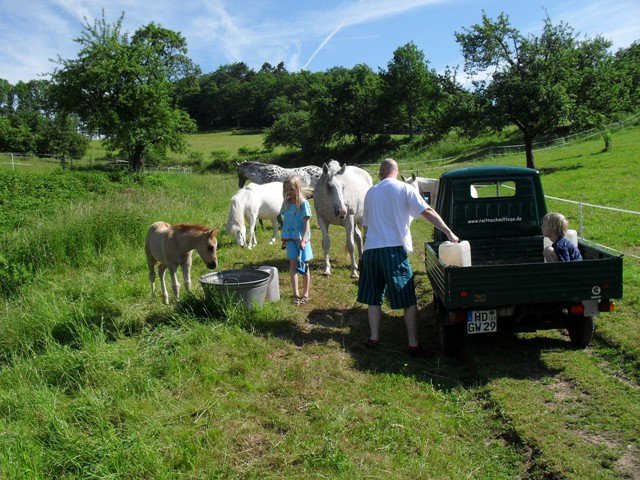 geb. August 2005, Quarterpony (IQPA), Stute, 135 cm groß; cremeweiß mit braunen Tupfen und Schattierungen. Bounty hat uns 14 Jahre lang begleitet und viele Menschen, groß und klein, mit ihrer liebevollen, geduldigen und gelassenen Art beschenkt. Leider hat sie 2024 eine Stoffwechsel Krankheit entwickelt, die es nicht mehr erlaubt, dass sie im Sommer mit der Herde auf die Weiden darf. Daher haben wir uns schweren Herzens entschlossen, sie abzugeben. Sie darf nun bei Dr. Katja Schmitt in Wilhelmsfeld ihre tollen Fähigkeiten im Pferdegestützten Coaching einbringen. Vielen Dank, liebe Bounty!! Du bist jetzt quasi "über den Berg" und wir werden in Kontakt bleiben.